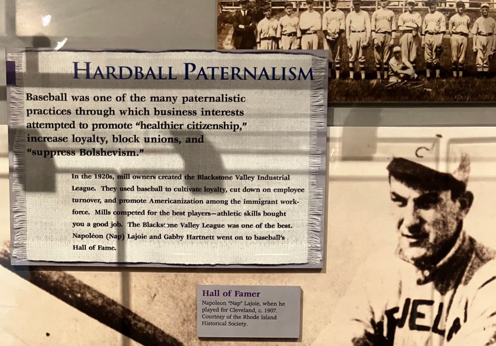 There’s lots of information about working conditions, including child labor, and some of the ways companies tried to keep workers from unionizing, like organizing baseball teams to “promote ‘healthier citizenship,’ increase loyalty, block unions and ‘suppress Bolshevism.'” And there’s a whole room devoted to the history of the Independent Textile Union (ITU) that was organized in Woonsocket during the early years of the Great Depression.